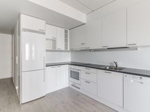 Tässä viihtyisässä kolmannen (3) kerroksen kaksiossa on tarkkaan harkitut neliöt. KT:ssä on jääpakastinkaappi sekä keraaminen keittotaso ja kalusteuuni. Vaaleansävyisessä kylpyhuoneessa on valkoinen keraaminen seinälaatta ja vaaleanharmaa keraaminen lattialaatta, säilytystilana on allaskaappi sekä peilikaappi. Täysleveälle pyykinpesukoneelle on myös paikka kylpyhuoneessa. Makuuhuoneessa on sopivasti tilaa parisängylle. Asunnon seinäpinnat ovat valkoiset ja lattiassa on vaaleanharmaa laminaatti. Lasitettu parveke toimii pitkälle syksyyn lisähuoneena