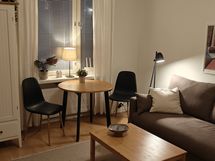 Taka-Töölö. Täydellisesti kalustettu yksiö. Upealla / turvallisella/ rauhallisella sijainnilla. Sibeliuspuiston ja meren vieressä. Keskustaan 2km kävellen, raitiovaunulla tai busseilla. Hyvät liikenne yhteydet joka suuntaan. Uusi 140cm vuode ja uusi vuodesohva. Wifi kuuluu vuokraan. Liinavaatteet ja pyyhkeet, myös vaihtoon. Keittokomerossa kaikki tarpeellinen. Jää/pakastekaappi, uuni, liesi, astianpesukone, mikro, kahvin ja vedenkeitin, kattilat, astiat ym. Kph pyykinpesukone. Asunnon ikkunat pihalle, jonne ei ajeta autolla. Asuntoon paistaa aamupäivän aurinko. Asunnossa on toukokuussa -2024 tehty täydellinen remontti ja uusittu koko keittokomero. Töölön kirjastoon 500m. Kauppoja, kahviloita, ravintoloita ym