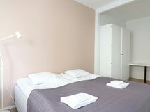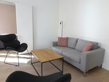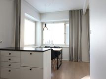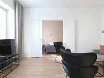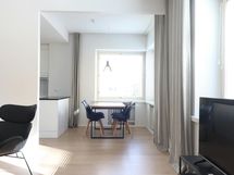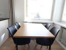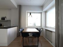 This inviting one-bedroom apartment in the prestigious Kruununhaka area of Helsinki offers a comfortable stay for up to four guests. The apartment boasts a stylish and fresh decor, with a spacious living room and a dining area that benefits from a corner window, filling the space with natural light. Sleeping arrangements include two single beds in the bedroom and a convenient fold-down double wall bed, ensuring a restful night's sleep.