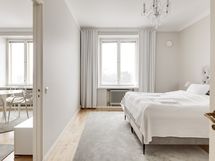 Töölön sydämessä sijaitseva valoisa ja tyylikäs asunto Välskärinkatu 5:ssä tarjoaa skandinaavista asumista parhaimmillaan. Täysin kalustettu ja varusteltu asunto sisältää laadukkaat kodinkoneet, jotka yhdistävät toiminnallisuuden ja tyylikkyyden. Kodikkaassa makuuhuoneessa on ylellinen 160 cm leveä parivuode. Asunnon suuret länteen päin avautuvat ikkunat päästävät sisään runsaasti luonnonvaloa ja tarjoavat näkymän kauniisiin, lämpimiin auringonlaskuihin.