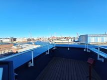 Modern and bright 1-room apartment available now in the lively Jätkäsaari district! The apartment features a large glazed terrace, perfect for use as an extra room all summer long. The building also offers a top-floor sauna and rooftop terrace with breathtaking views – ideal for relaxing evenings.