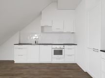 Keittiön varustelutasoon kuuluu mm. Boschin integroitu keraaminen liesi ja astianpesukone.