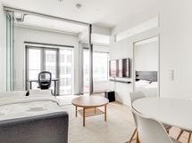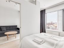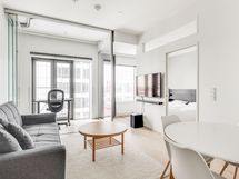 We are looking for tenants to this newly built and fully equipped furnished 1-bedroom apartment in Helsinki Kalasatama, in Finland's highest residential building called Redin Majakka. The apartment building has lobby service and is attached to the shopping mall Redi with direct elevator access to both the shopping mall and the Kalasatama metro station. Fast internet access and remote workstation, smart TV, as well as a dishwasher and washing machine enable a comfortable living for both longer and shorter periods of time. On top of that you have access to the building's amazing sauna section and roof top terrace. We make flexible contracts from 1 week to 2 years.