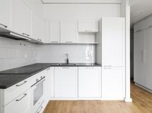 Keittiön varustelutasoon kuuluu mm. Boschin integroitu keraaminen liesi ja astianpesukone.