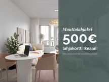 Kampanja! Tarjoamme muuttolahjaksi 500 € lahjakortin Ikeaan, kun allekirjoitat sopimuksen 31.1.2026 mennessä! Lahjakortti toimitetaan 2 kk nuhteettoman asumisen jälkeen
