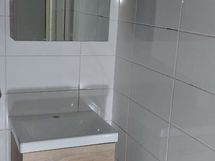 Putkiremontin yhteydessä kylpyhuone on laajennettu niin, että sinne mahtuvat hyvin pesukone ja kuivausrumpu (kuuluvat asuntoon). Tämä laajennus ei valitettavasti näy pohjapiirrustuksessa. Asunnossa on myös toinen wc.