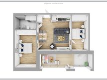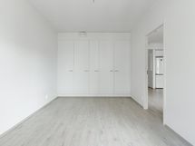 Tervetuloa tähän kotiin, isommassa makuuhuoneessa on ikkunat kahteen suuntaan ja pienemmästä makuu-/työhuoneesta on käynti terassiparvekkeelle. Kummassakin huoneessa on hyvin säilytystilaa ja kaikissa ikkunoissa on sälekaihtimet, joiden avulla valon määrää on helppo säädellä.