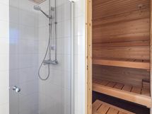 Asunto on läpitalon, joten luonnonvaloa tulvii sisään joka huoneeseen. Lasitettu parveke tarjoaa ylimääräistä tilaa, jossa voit nauttia aamukahvista tai rentoutua illalla. Oman saunan lämpö rentouttaa ja tarjoaa täydellisen paikan rauhoittumiseen kiireisen päivän jälkeen.