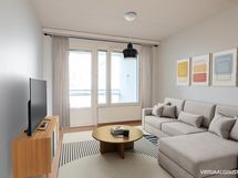 Kodissa on erillinen keittiö, johon mahtuu ruokapöytä, sekä tilava olohuone, josta on kulku lasitetulle parvekkeelle. Kaksi makuuhuonetta sijoittuvat vierekkäin, ja molemmissa on vaatekaapit säilytystilaa varten. Asunnossa on erillinen WC sekä kylpyhuone, jossa tilaa myös pesukoneelle.