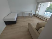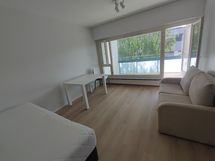 Avara ja valoisa isoikkunallinen yksiö, jossa suuri lasitettu parveke (n.7.5 m2) etelään, oma keittiö , eteinen ja juuri valmistunut kylpyhuone. Putkiremontti valmistunut keväällä 2025. Pesukone. Ylin, 6. Krs. Rauhallinen sijainti uimarannan tuntumassa. Lähellä lenkkipolut, koirapuisto ja kaupat 300m. Bussilinja 21 vie joko metrolle tai Kamppiin. Talossa 10M nettiyhteys.Huoneistossa juuri nyt tehty uudet vinyylilankkulattiat sekä maalaus yms pintaremonttia 2025. Suurella parvekkeella on lasitus ja parveke/terassi on priimakunnossa. Ei suuria remontteja tiedossa. Taloyhtiön sanatiloissa myös uima-allas. Taloyhtiöllö myös parkkipaikkoja. Vesimaksu 25€/kk, vuosittainen mittaritasaus. Vuokralainen ottaa oman sähkösopimuksen. Laaja kotivakuutus oltava. Kaupat, apteekki n 500m. Vuokrataan osittain kalustettuna halutessaan.