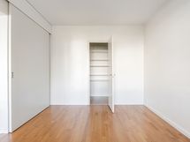 Viihtyisä kaksio, jossa kompakti keittiö, tilava makuuhuone, vaatehuone ja lasitettu parveke.
