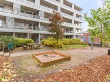 There are good basic services in the surrounding area, as well as pleasant park areas. Right next door is the Teurastamo and Tukkutori market area, with shops, restaurants and cafés, as well as a barbecue area for residents to use. Kalasamata metro station is within walking distance, as are the Hämeentie tram and bus stops.