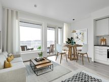 Tämä kahdeksankerroksinen kerrostaloyhtiö tarjoaa yhteensä 75 LähiTapiolan Mutkatonta kotia yksiöistä tilaviin, kaksikerroksisiin perheasuntoihin. Skandinaavisen linjakkaat kodit tulvivat valoa ja niissä on kaikissa lasitettu parveke, vaaleat kalusteet ja vaaleanharmaa laminaattilattia. Taloyhtiön yhteistilat kuten pesutupa, kuivaushuone, sauna, huoneistokohtaiset irtaimistovarastot sekä urheiluvälinevarasto ovat veloituksetta käytettävissäsi. Taloyhtiön kodit ja parvekkeet ovat savuttomia.