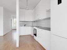 Tilava kaksio, jossa arki sujuu vaivattomasti. Asunto on avara ja valoisa pohjaratkaisu luo kodikkaan tunnelman. Keittiö yhdistyy luontevasti olohuoneeseen.