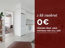 2 kk vuokrat 0 €, kun vuokrasopimus alkaa toukokuun aikana. Kampanjasopimuksen minimiasumisaika on 12 kuukautta ja edun pääsee hyödyntämään kesäkuussa 2026 sekä tammikuussa 2027. Vikkelät viikot -kampanja on voimassa 17.4.-27.4.2026. Edun pystyt hyödyntämään kun jätät asuntohakemuksen kampanja-aikana. Etu ei koske käyttökorvauksia. Etu koskee vain uusia vuokrasopimuksia. Ei koske talon sisäisiä muuttoja.