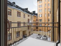 Asunnon keittiön ikkunoiden kohdalle valmistui vuoden 2023 päätteeksi tilava sisäpihaparveke.