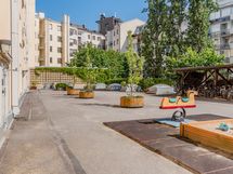 The apartment is in a great location in Kallio, near Torkkelinmäki, with excellent transportation connections in all directions. Sörnäinen metro, tram stops, and bus stops are just a few minutes’ walk away.