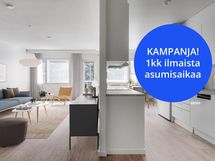 KAMPANJA: Ensimmäisen kuukauden vuokra veloituksetta. Tältä ajalta maksetaan vesimaksut ja mahdollinen autopaikka normaalisti. Etu voimassa vain uusille asukkaille, ja koskee vain kampanja-aikana vapaina olevia asuntoja. Vuokrasopimus tehdään toistaiseksi voimassa olevaksi, ja ensimmäinen mahdollinen irtisanomisaika on 6 kuukauden kuluttua sopimuksen alkamisesta. Kampanja on voimassa toistaiseksi.