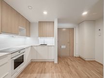Tervetuloa kotiin! Tämä uusi asunto ihastuttaa kauniilla pinnoilla, loistavalla varustetasolla ja tehokkaalla pohjallaan. Kauniissa keittiössä on kaikki tarvittavat kodinkoneet toimivaan arkeen, kuten suuri jääkaappipakastin ja astianpesukone. Välitilassa on tunnelmallinen valaistus led-valonauhoilla. Huoneen puolelta kulku tilavalle lasitetulle parvekkeelle sisäpiha- ja metsämaisemilla. Tyylikkäästi laatoitetusta kylpyhuoneesta löytyy asumismukavuutta lisäävä mukavuuslattialämmitys ja paikka pesutornille. Säilytystilaa on runsaasti pyykkikaapin ansiosta. Eteisessä ja huoneen puolella on runsaasti säilytystilaa. Eteisestä löytyy erillinen siivouskaappi ja peililiukuovikaapisto ulkovaatteille, ja huoneen puolelta kaapistot muille vaatteille.
