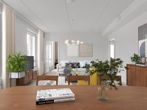 Bright and well-designed apartments with large windows and glazed balconies. The apartments have light oak-toned laminate flooring and a fully equipped kitchen with quality appliances: dishwasher, induction stove, built-in oven and fridge-freezer. The bathrooms have connections and space for a washing machine and tumble dryer. The bathrooms are also equipped with comfort underfloor heating, which is connected to the apartment's electricity.