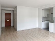 Tämän Lumo-kodin tehokkaissa neliöissä on kaksi makuuhuonetta, erillinen keittiö ja avara olohuone, josta on käynti lasittamattomalle parvekkeelle. Todella kiva ja toimiva pohjaratkaisu. Asunnossa on vaalean tammen sävyiset laminaattilattiat ja seinät ovat maalatut.