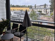 Asunnossa on etelään avautuva parveke – lähes huoneen kokoinen tila, jossa voit nauttia auringonpaisteesta keväästä pitkälle syksyyn. Parvekkeelle mahtuu helposti ruokapöytä kuin sohvanurkkauskin ja lasien avulla se toimii viihtyisänä lisähuoneena lähes ympäri vuoden.