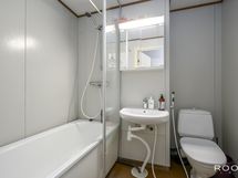 - Pesutilojen kuvaus: VARUSTUS: hana, allas, peilikaappi, amme, wc, bidee-suihku, pesukoneliitäntä.