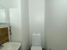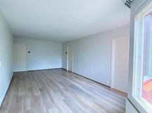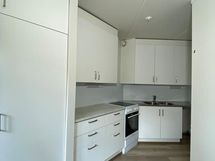 The light-coloured kitchen has plenty of counter space, space for a dishwasher and plenty of storage space for the residents' dishes. A spacious bathroom, place for a washing machine and a separate toilet make everyday life easier. The spacious living room can easily accommodate the living room furniture, and the corner window gives the room an interesting look.
