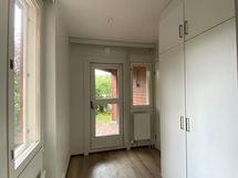 A bright private room in a spacious shared apartment with a yard and a terrace in the green area of Malminkartano. The comfortable apartment has plenty of storage space, and you can relax and spend time by the plants in the shared yard and on the terrace. In the three-room apartment, each resident has their own room with a lock and the living room, kitchen, bathroom, toilet and the yard with a terrace are reserved for shared use. Your own room can easily accommodate a bed and a workstation, and the room has a charming bay window to bring light into the space.