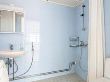 - Kylpyhuone, suihku, peilikaappi, kaapit, pesukoneliitäntä, kiinteät valaisimet.