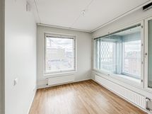 Avarapohjainen kulma-asunto, jonka lasitetulta parvekkeelta näkymät kahteen suuntaan. Ilmoituksen kuvat vastaavapohjaisesta kodista.