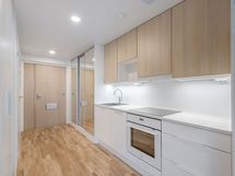 Tämä uusi asunto ihastuttaa kauniilla pinnoilla, loistavalla varustetasolla ja tehokkaalla pohjallaan. Kauniissa vaaleassa keittiössä on kaikki tarvittavat kodinkoneet toimivaan arkeen, kuten suuri jääkaappipakastin ja astianpesukone. Välitilassa on tunnelmallinen valaistus led-valonauhoilla. Huoneen puolelta kulku tilavalle lasitetulle parvekkeelle. Tyylikkäästi laatoitetusta kylpyhuoneesta löytyy asumismukavuutta lisäävä mukavuuslattialämmitys ja paikka pesutornille. Eteisen ja keittiön kaapistoissa on runsaasti säilytystilaa.