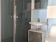 - Peili, allaskaappi, suihku, suihkuseinät, pyykinpesukone liitäntä ja tilavaraus