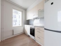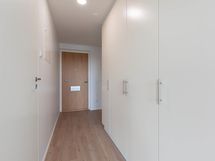 Heti vapaa, kolmannen kerroksen kaksio tarjoaa vaaleat pinnat, tilavan makuuhuoneen ja kylpyhuoneen sekä runsaasti kaappitilaa. Asunnossa on iso lasitettu parveke, joka tuo mukavasti luonnonvaloa sekä toimii erinomaisesti lisätilana vuodenajasta riippuen.