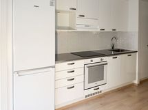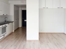 Lattiassa on tammikuvioitu laminaatti ja seinät ovat maalatut. Keittiössä on keraaminen liesitaso, jääkaappipakastin sekä integroitu 45cm astianpesukone. Kylpyhuoneessa on harmaa laatta lattiassa ja valkoiset laatat seinissä. Kylpyhuoneessa on liitännät omalle pyykin pesukoneelle.