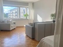 Kalustettu iso valoisa ylimmän kerroksen kaksio avarin näköaloin keskellä Kalliota. Iso makuuhuone, jossa walk-in closet sekä oma suihku. Lisäksi iso olohuone, josta erotettu pieni makuusoppi sekä valoisa keittiö. Iso olohuone, jossa makuusoppi muunneltavissa toiveiden mukaan.
