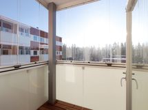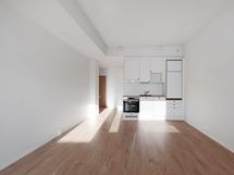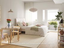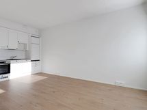 Ihastuttava, pieni yksiö, joka on täydellinen yhdelle hengelle. Kompaktin asunnon neliöt ovat käytetty tehokkaasti. Pieneen kotiin on saatu mahtumaan kaikki tarpeellinen, ottamatta mitään ylimääräistä. Keittiö on avoin olohuoneeseen, mikä tuo kivasti avaruutta ja tilan tuntua. Avara olohuone antaa mahdollisuuden sijoittaa kalusteet vapaasti oman tyylin ja tarpeiden mukaisesti. Pieni lasitettu parveke tarjoaa kotiin lisätilaa ja toimii arjen rentoutumispaikkana.