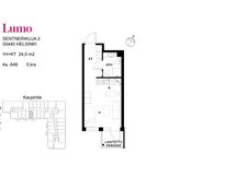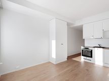 Ihastuttava, pieni yksiö, joka on täydellinen yhdelle hengelle. Kompaktin asunnon neliöt ovat käytetty tehokkaasti. Pieneen kotiin on saatu mahtumaan kaikki tarpeellinen, ottamatta mitään ylimääräistä. Keittiö on avoin olohuoneeseen, mikä tuo kivasti avaruutta ja tilan tuntua. Avara olohuone antaa mahdollisuuden sijoittaa kalusteet vapaasti oman tyylin ja tarpeiden mukaisesti. Pieni lasitettu parveke tarjoaa kotiin lisätilaa ja toimii arjen rentoutumispaikkana.