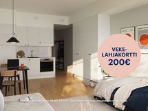 Ystävänpäiväetu!Vuokraa tämä asunto helmikuun aikana ja saat 200 euron arvoisen lahjakortin Veke huonekaluliikkeeseen. Saat käytännön ohjeet myyntineuvottelijoiltamme.Etu koskee vain merkittyjä asuntoja. Etu ei koske Lumo-kodista toiseen vaihtavia.