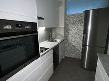 - Teräskalusteet, Laminaattitasot, Astianpesukone, Liesituuletin, Sähköliesi, Jää-pakastinkaappi, Kaikki uutta: Jää-pakastinkaappi, Liesi