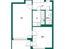 - Uusittu kph: Suihkuseinä, Pesukonevalmius, Peilikaappi, Allaskaappi, Laattalattia, Rättipatteri, Laattaseinä, Lattialämmitys