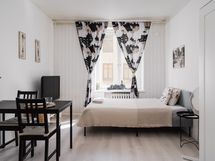 This bright and compact studio apartment offers the perfect combination of comfort and luxury. Located on the 3rd floor of a residential building, you’ll be just a few steps away from the lively center of Helsinki.