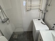 Asunnossa on pesukone, ja taloyhtiössä on myös maksulliset pesutilat.