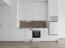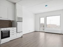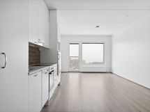 Tarjolla kompakti yksiö modernilla keittiöllä. Iso kylpyhuone ja eteisessä säilytystilaa.