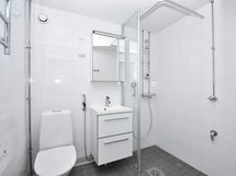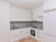 Kodikas ja valoisa yksiö Vuokra-asunto puistikon laidalla Itä-Pasilassa Soman pikkukodin pohjaratkaisu on selkeä ja avoin. Keittokomero ja olohuone yhdistyvät viihtyisäksi oleskelutilaksi, jonka kalustat helposti oman makusi mukaiseksi. Kodin lattiat ovat valkaistua tammilankkua mukailevaa laminaattia ja seinät on maalattu valkoisella. Komerokalusteet ovat valkoisia ja ikkunoissa on sälekaihtimet. Keittokomeron kalusteet ovat valkoisia. Työtaso ja ylä- ja alakaappien välinen tila ovat laminaattia. Varustukseen kuuluu jääkaappipakastin, astianpesukone, liesi ja liesikupu sekä paikka mikroaaltouunille. Kylpyhuoneessa kalusteet ovat SATOn kotimaista Kide-mallistoa ja niiden materiaali on kestävää ja kaunista valkoista massiivilaminaattia. Seinät ja lattiat on laatoitettu ja pesukoneelle on tilaa.