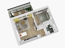 KAMPANJA: Uusiin vuokrasopimuksiin -1000€ vuokra-alennus ensimmäisestä täyden kuun vuokrasta, kun sopimus alkaa viimeistään 29.4.2026. Sopimukseen sitouduttava vuodeksi. Mikäli sopimus irtisanotaan ennen ensimmäistä mahdollista irtisanomispäivää, tulee maksettavaksi 1 kk vuokraa vastaava sakko. Kampanjoiden yhteydessä vakuus vain 350€. Asunto on mahdollista vuokrata myös ilman kampanjaa. CAMPAIGN: For new lease agreements, get a €1,000 rent discount on the first full month’s rent when the agreement starts no later than April 29, 2026. The lease must be committed for one year. If the agreement is terminated before the first possible termination date, a penalty equal to one month’s rent will apply. During campaigns, the security deposit is only €350. The apartment can also be rented without the campaign. Kokkokalliontie 1 on maaliskuussa 2022 peruskorjauksesta valmistunut 9-kerroksinen kerrostalo Helsingin Reimarlassa Pitäjänmäen sydämessä. Asuntojen kalusteet ja varusteet on uusittu täysin peruskorjauksessa. Remontoidun vuokrakodin vaaleat, raikkaat pinnat tekevät kodista avaran ja valoisan. Osassa asuntoja on oma lasitettu parveke, joka antaa lisätilaa kodin arkeen ja juhlaan monena vuodenaikana. Asuntojen lattiat ovat laminaattia.