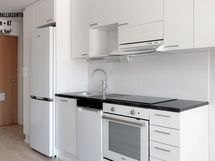 Bright and well-designed apartments with large windows and glazed balconies, and studio apartments have a French balcony. The apartments have light oak-toned laminate flooring and a fully equipped kitchen with quality appliances: dishwasher, induction stove, built-in oven and fridge-freezer. The bathrooms have connections and space for a washing machine and tumble dryer. The bathrooms are also equipped with comfort underfloor heating, which is connected to the apartment's electricity.