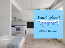 KAMPANJA: Uusiin vuokrasopimuksiin -200€ alennus kolmen ensimmäisen täyden kuukauden vuokrasta, kun sopimus alkaa viimeistään 29.4.2026. Sopimukseen sitouduttava vuodeksi. Mikäli sopimus irtisanotaan ennen ensimmäistä mahdollista irtisanomispäivää, tulee maksettavaksi 1 kk vuokraa vastaava sakko. Kampanjoiden yhteydessä vakuus vain 350€. Asunto on mahdollista vuokrata myös ilman kampanjaa.