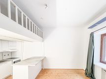 Kodilla on mukavan rauhallinen sijainti, ja kuitenkin alueen vilkkaimmille kaduille on vain lyhyt kävelymatka. Liikenneyhteydet ovat mitä parhaimmat! Bussipysäkille ja raitiovaunulle kävelyä on vajaa 300 metriä, ja metrollekin alle 600 metriä! Kodissa parvi antaa mukavasti lisätilaa jättäen huoneen lattiatilan tyhjäksi. Parvella on leveyttä noin 120 cm, ja sen alle jää korkeutta noin 190 cm. Pyykinpesu hoituu näppärästi taloyhtiön pesutuvassa.