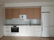 Tämän kodin sydän on keittiö, joka avautuu luontevasti valoisaan olohuoneeseen. Keittiön yläkaapit ovat vaaleat tammiviilukuviolla ja alakaapit valkoiset. Keittiön varustukseen kuuluu keraaminen liesitaso, erillisuuni, jää-pakastinkaappi ja astianpesukone. Asunnossa pääset nauttimaan oman saunan lämmöstä silloin kuin se sinulle sopii. Lisäksi lasitettu parveke toimii lämpimimpinä vuodenaikoina lisähuoneena.